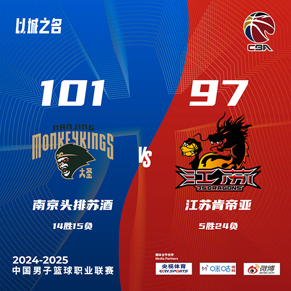 优直播讯北京时间1月10日讯 CBA常规赛继续进行,同曦主场迎来与江苏的同省德比,林葳因流感休战两场后复出,同曦近期遭遇连败,13胜15负暂列联赛第11位,江苏上场不敌广州,5胜23负继续排在联赛倒数第二。首节开打后双方便陷入缠斗,同曦双外援利夫和哈里斯杀伤内线,江苏三外援古德温、汤普森和杰克逊轮番回应,两队比分始终紧咬,首节结束时江苏领先1分,次节回来,双方依然杀得难分难解,哈里斯延续手感予取予求,江苏火力不减强势回应,末段林葳联手哈里斯突然发力,半场战罢,同曦反超5分。易边再战后双方火力放缓,古德温单节11分率队追分,但同曦多点开花牢牢占优,三节结束后同曦依然领先5分,末节决战,江苏难以打出追分高潮,同曦始终保持两位数左右的领先,末段杰克逊飚中三分仍难救主,最终同曦101-97力克对手终结连败。