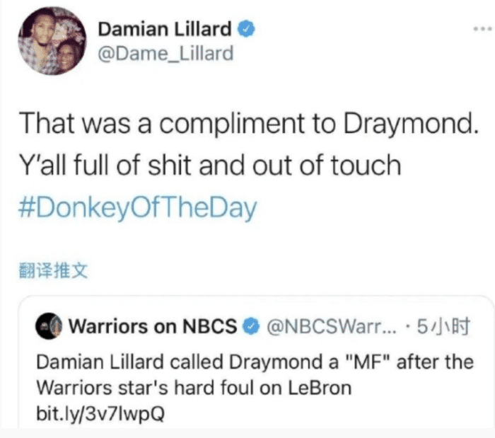 当时利拉德发推写道:追梦格林就是个混蛋。
