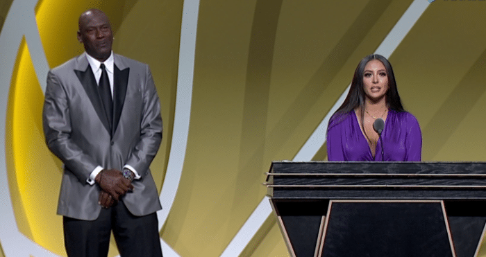 同时瓦妮莎还模仿科比状态,期间也有粗口:现在他正在插着手看着,说入选名人堂,这不算什么。之后瓦妮莎还以科比的视角感谢了家庭等等,演讲结束之后,全场高喊科比的名字,非常感动。