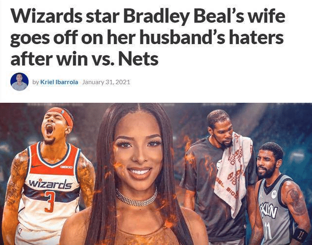 比尔妻子的霸气是出了名的,今年奇才击败实力强大的篮网,赛前有不少人之一比尔的状态和对于奇才的归属感,而比尔最终带队赢球,他的妻子也在社交媒体上霸气的回怼球迷们,非常强硬。