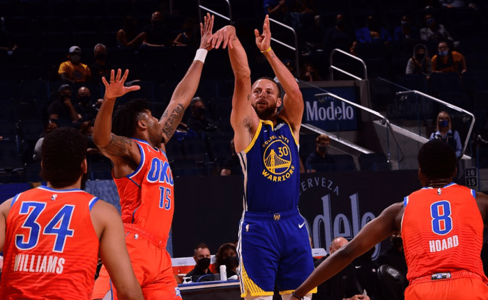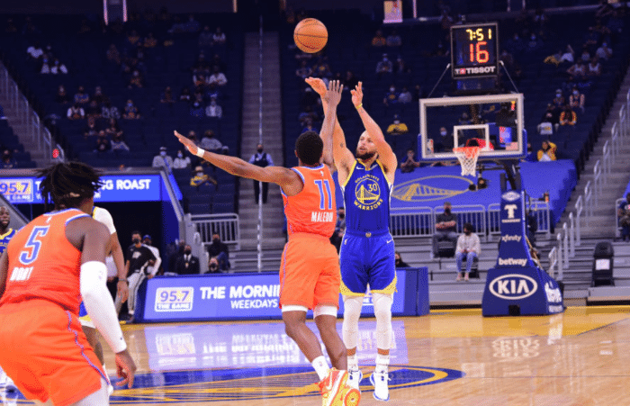 优直播讯 北京时间5月9日,勇士主场迎战雷霆,后者全明星后一直在摆烂,这场对决,勇士只用了半场时间就让比赛失去了悬念!而三节时间打完,勇士已经领先到39分,最终勇士主场136比97大胜雷霆取得两连胜。库里今天再次让外界知道了什么叫得分爆发力!