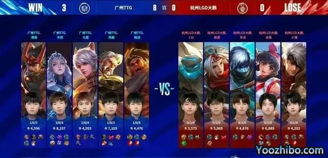 优直播讯 北京时间03月12日,在KPL第三场比赛中,广州TTG以3-0的比分碾压杭州LGD大鹅,拿下第二轮常规赛的首胜。