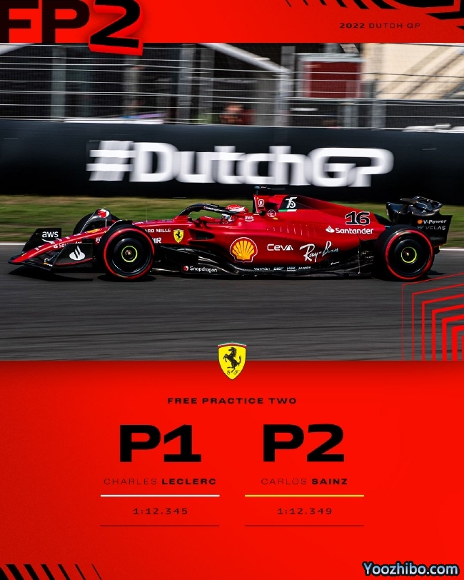 优直播讯 2022年F1荷兰大奖赛第2次练习赛9月2日晚结束,法拉利车队夏尔·勒克莱尔以1分12秒345的成绩排名第一,队友塞恩斯仅落后0.004秒位居第二,汉密尔顿第三。诺里斯、拉塞尔、斯托尔、阿隆索、维斯塔潘、奥康、里卡多分列四至十位。中国车手周冠宇圈速排名第15位。