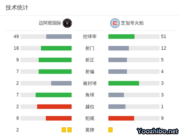 最终迈阿密国际2-1芝加哥火焰领跑东区。