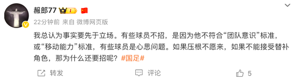 每次国足名单公布,总会引发争议。不少媒体人和球迷也都会纷纷指责国足主帅,为何一些联赛表现出色的球员,却没有入选名单,而这次也不例外。而知名记者肖赧则在社媒发文力挺伊万,他暗示部分国脚落选因“心思问题”。他们不想为国出战或者不愿意在国家队当替补。