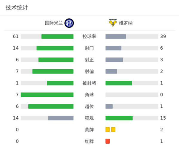 优直播讯 :北京时间1月6日19:30,意甲第19轮继续进行,国际米兰坐镇主场梅阿查球场迎战维罗纳,本场主裁判为法布里。上半场,姆希塔良助攻劳塔罗外脚背弹射破门。下半场,托马-亨利扳平比分,弗拉泰西替补绝杀,拉佐维奇染红;读秒阶段维罗纳获得点球机会,但托马-亨利射中门柱。最终,国米主场2-1险胜维罗纳。
