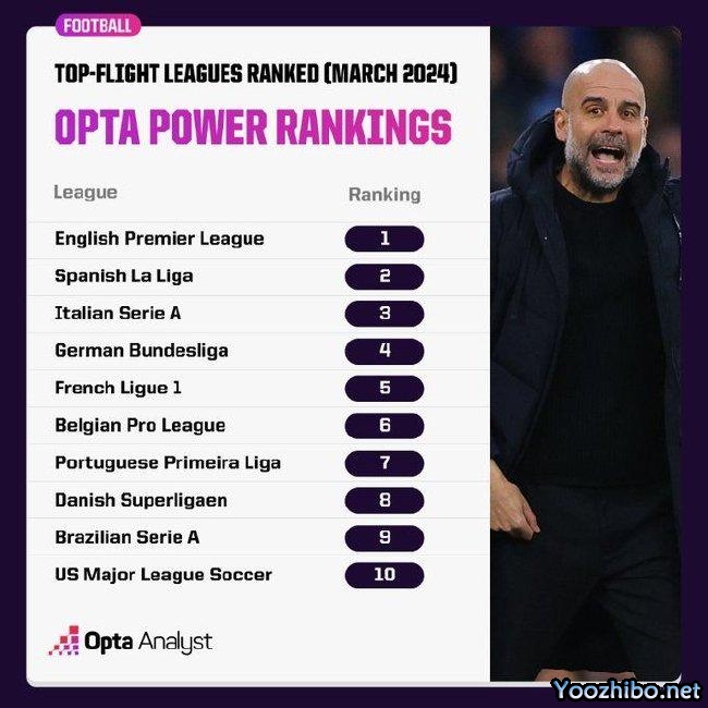 优直播讯 著名数据机构OPTA公布了2024年最新一期的联赛排名,英超毫无疑问地位居榜首。