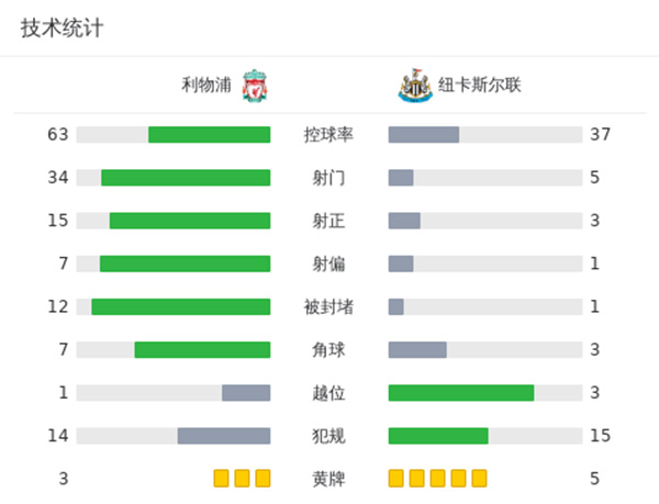 最终利物浦主场4-2击败纽卡,3分优势领跑英超。纽卡遭遇英超3连败。