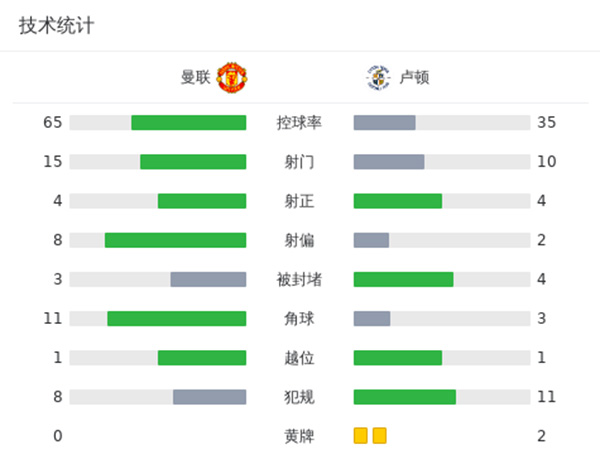 最终曼联主场1-0战胜卢顿,迎来英超两连胜。