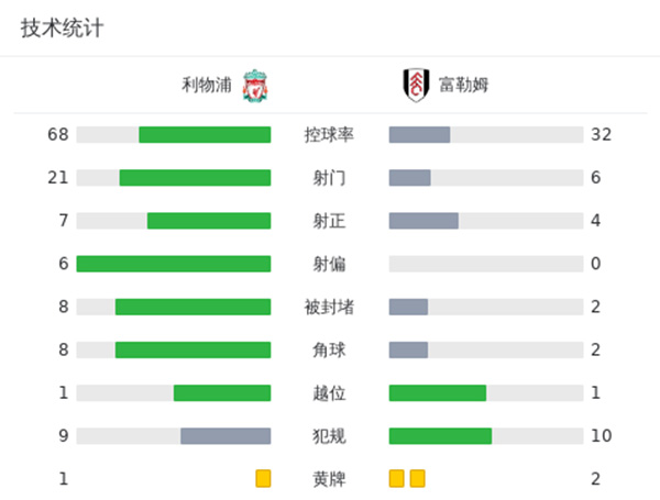 最终首回合利物浦2-1逆转富勒姆取得先机。