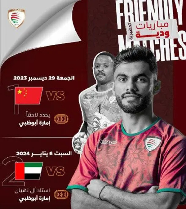 优直播12月20日讯,阿曼国家队官方公布了两场热身赛的时间:12月29日阿曼将对阵中国队,1月6日阿曼对阵阿联酋队。
